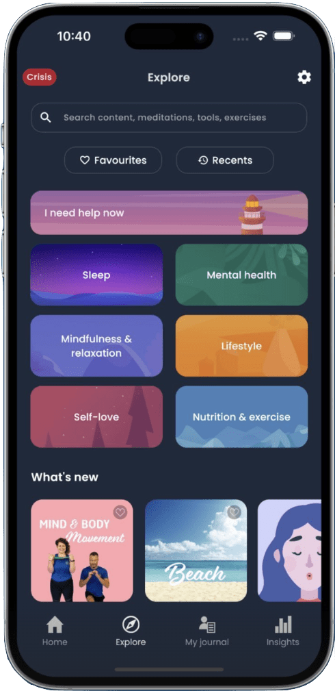 - Daily tools: Navigate life challenges with in-the-moment activities, from changing habits to managing anxiety, tackling depression, improving sleep, and reducing stress.